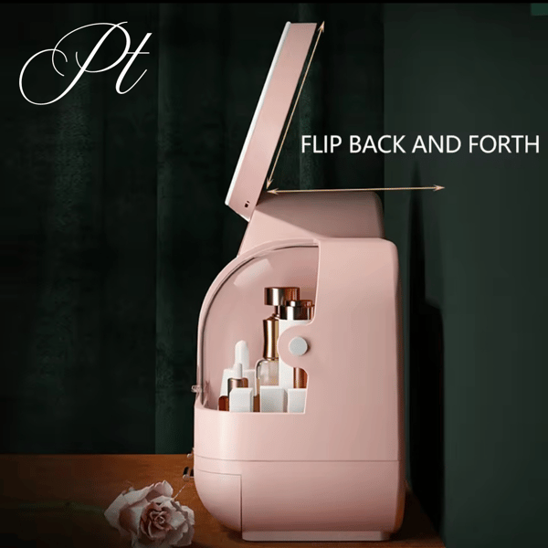 Caja de almacenamiento de cosméticos con carga USB y anillo LED